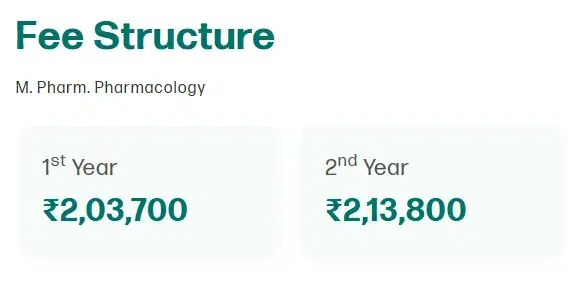 GITAM School of Pharmacy Visakhapatnam M.Pharm Pharmacology is offered as 2 Years Full Time program. The minimum eligibility criteria for M.Pharm is B.Pharm with 50% + GAT. The total fees for GITAM School of Pharmacy Visakhapatnam M.Pharm Pharmacology in 2025 is ₹ 4.18 Lakhs for the complete course duration, which includes total tuition fees of ₹ 4.18 Lakhs. Earlier, the fees in 2024 - 2025 for M.Pharm Pharmacology was ₹ 3.98 Lakhs.