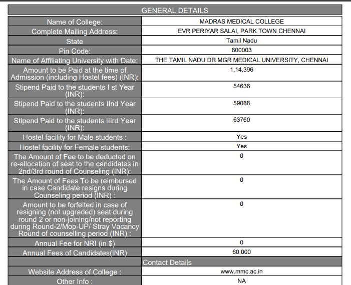 MMC Chennai Hostel Fee is ₹ 35,000 to 50,000.