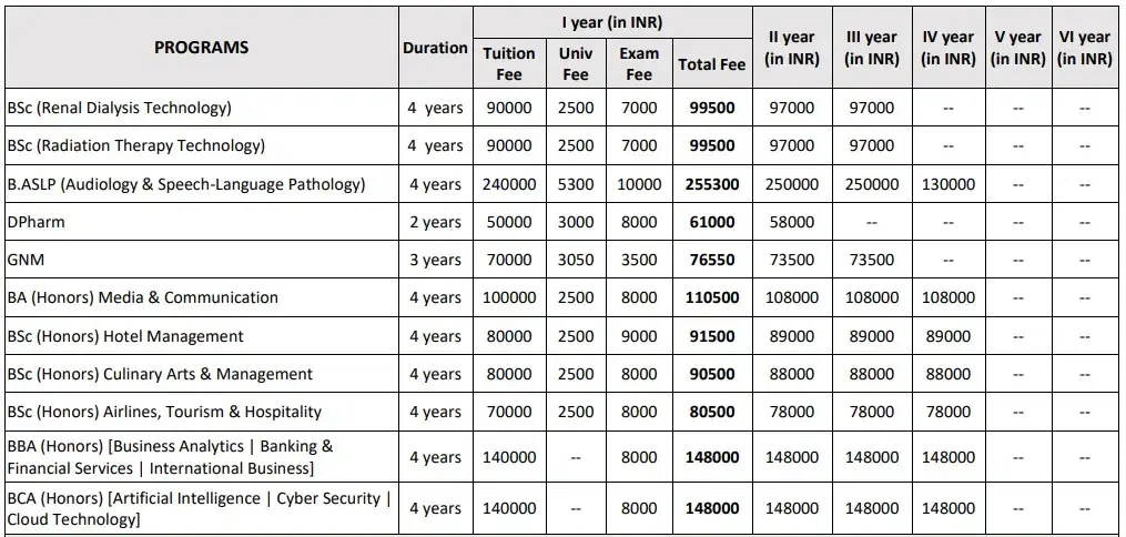 | Fees (2025 - 2026) | Year 1 (in INR) | Year 2 (in INR) |