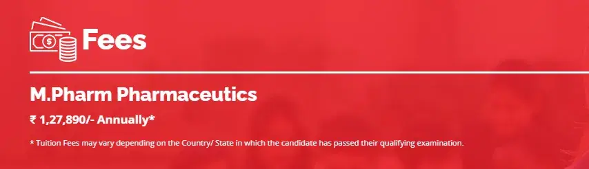Parul Institute of Pharmacy and Research Vadodara M.Pharm Pharmaceutics is offered as 2 Years Full Time program. The minimum eligibility criteria for M.Pharm is B.Pharm with 55%. The total fees for Parul Institute of Pharmacy and Research Vadodara M.Pharm Pharmaceutics in 2025 is ₹ 2.56 Lakhs for the complete course duration, which includes total tuition fees of ₹ 2.56 Lakhs. Earlier, the fees in 2024 - 2025 for M.Pharm Pharmaceutics was ₹ 3.34 Lakhs.