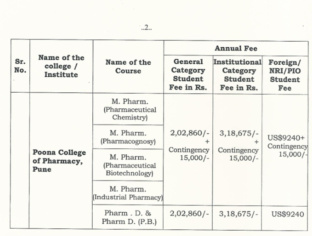 12 Aug, 2025 Poona College of Pharmacy Pune Fee Structure 2025-26 has been released. The academic fee for Pharm.D (Post Baccalaureate) is ₹ 6.09 Lakhs.