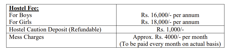 Hostels charges per year is 19000 and the estimate and food charge is 3700 per month.meal quality is not so good. It's better to rent a room at locality. At this college area there are many affordable room and flats are available.