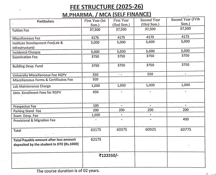 | Semester Wise Fees | ₹63175 | ₹60375 | ₹60925 | ₹60775 |