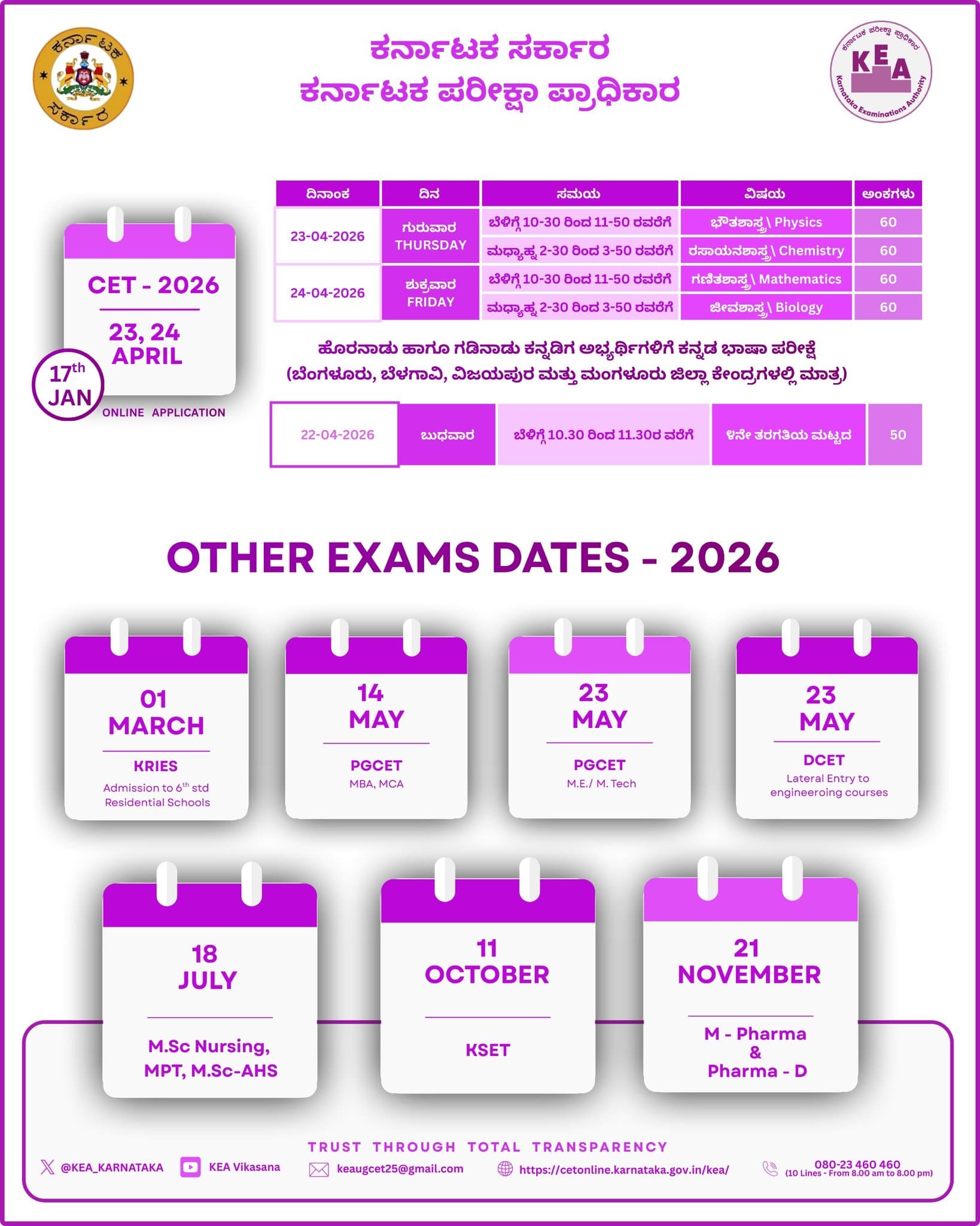 03 Jan, 2026 Karnataka UGCET Exam Dates released. Kannada Language Test on April 22. Check Dates Here
