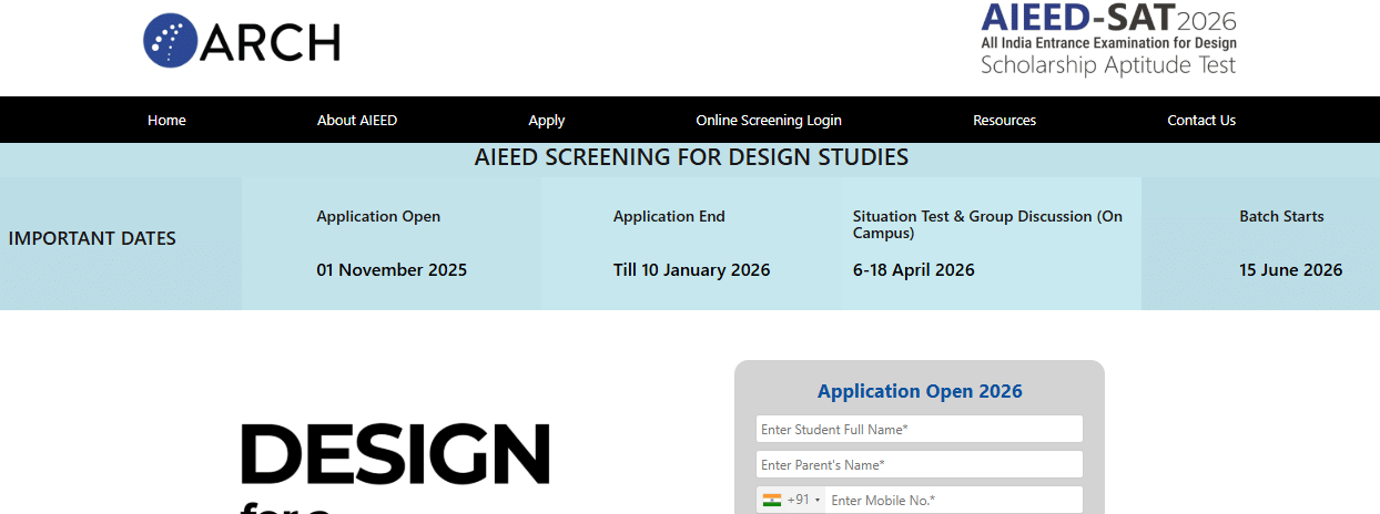 All India Entrance Examination for Design (AIEED) is an entrance examination conducted by the Arch College of Design and Business. The entrance examination is conducted for admission to UG and PG design programs. To be eligible for the exam, candidates must have completed 10+2 for UG courses and graduation for PG courses from any recognized board or university.