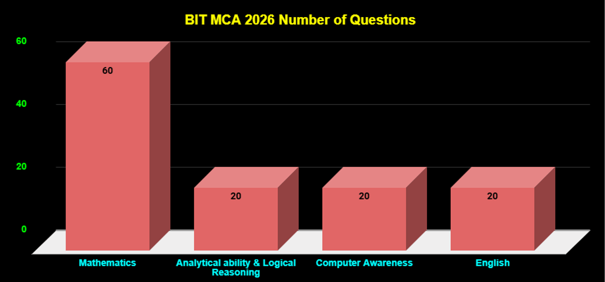 BIT MCA syllabus is divided into four subjects. A total of 120 questions will be asked. The duration of BIT MCA exam 2026 is two hours. The exam is going to take place in online mode or it is a computer-based test.