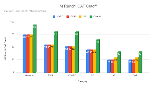 - The overall IIM Ranchi CAT qualifying cutoff for general candidates is 95 percentile.