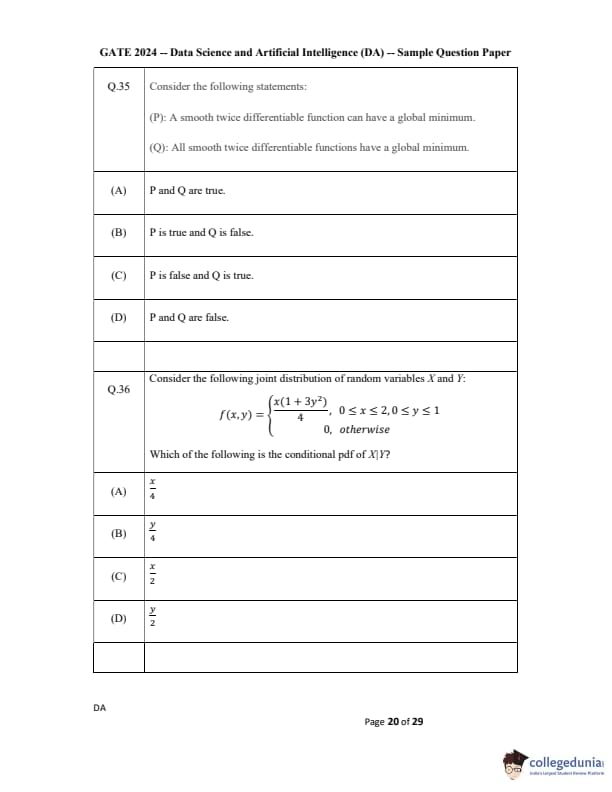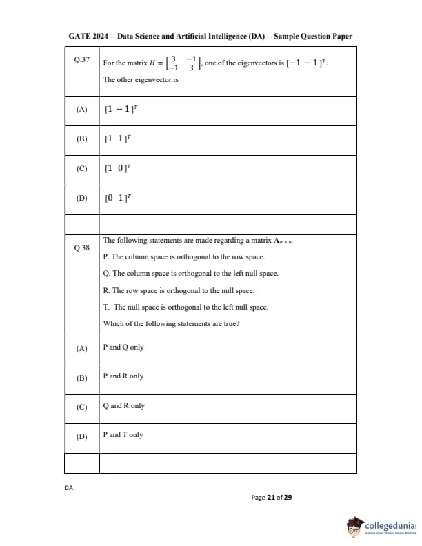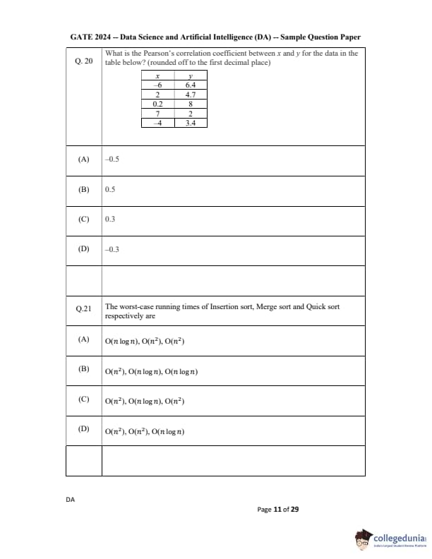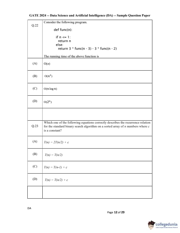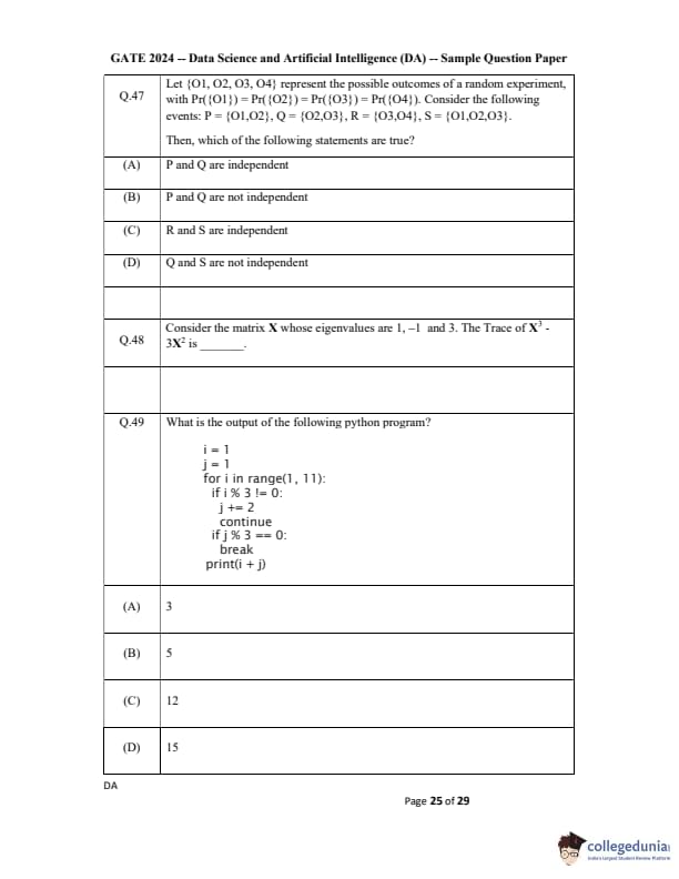 NOTE: Candidates must note that GATE 2024 Data Science and AI Sample Paper PDF added above is the one released on the official website. Collegedunia will try to provide you with proper answers to the sample paper pdf.