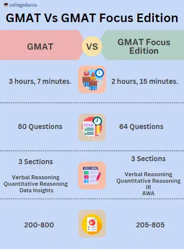 Ans. The GMAT Focus Edition is a streamlined version of the traditional GMAT, with only 3 sections (Verbal Reasoning, Quantitative Reasoning, and Data Insights), a shorter exam time (2 hours 15 minutes), and simplified scoring, while the classic GMAT had 4 sections and a longer duration.