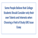 Some People Believe that College Students Should Consider only their own Talents Choosing a Field of Study Gre Issue Essay