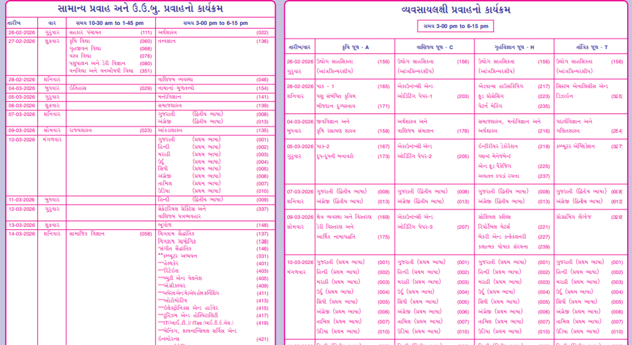 | March 13, 2026 | Gujarati, Hindi (Second Language) Sanskrit, Persian, Arabic, Prakrit, Computer Education (Theory) |