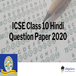 ICSE Class 10 Hindi Question Paper 2020 with Answer Key