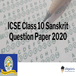 ICSE Class 10 Sanskrit Question Paper 2020 with Answer Key