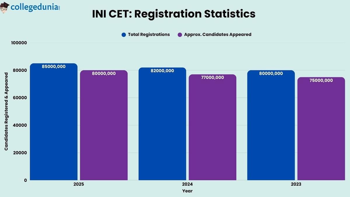 - INI CET Registration Statistics: 2025, 2024 & 2023