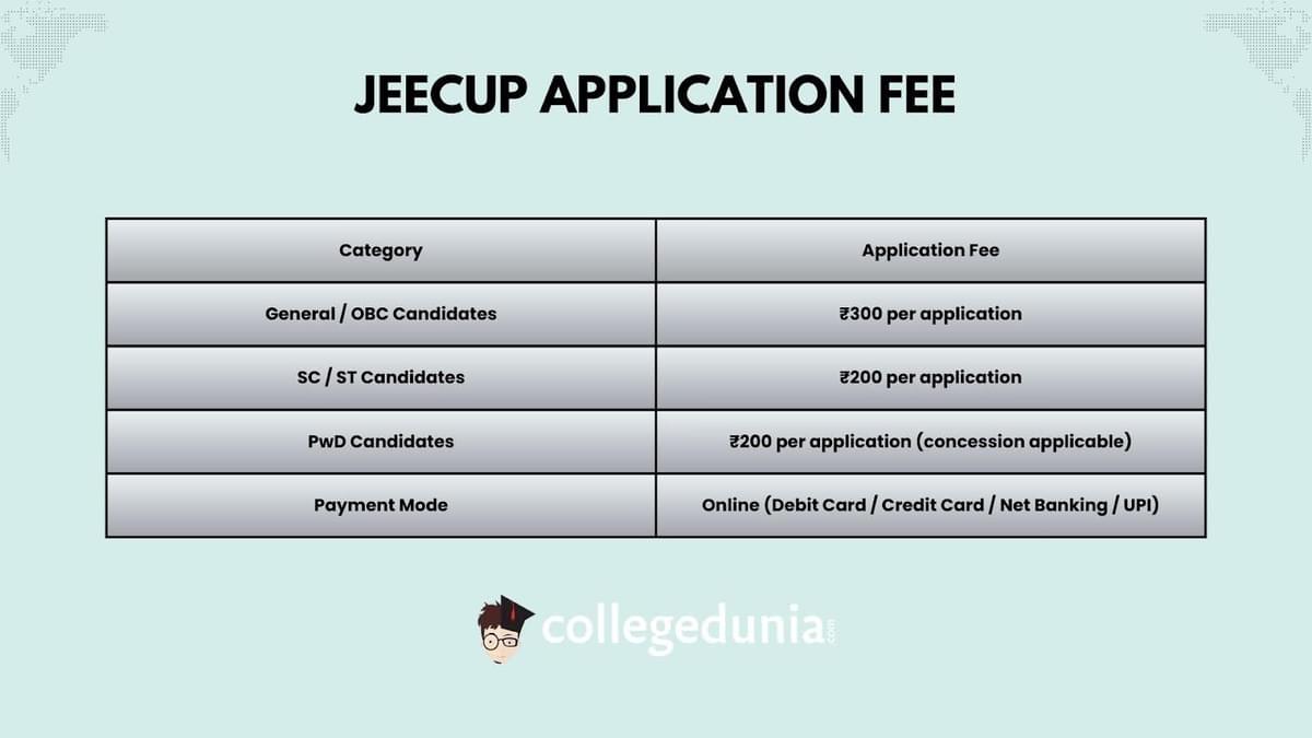 The JEECUP Application fees will vary according to the category of the candidates, and the application will not be completed without payment.