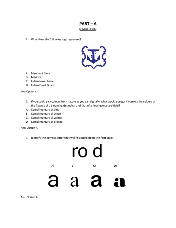 - MCQs where the candidates will be evaluated for logical reasoning, general knowledge, and visual sensibilities.