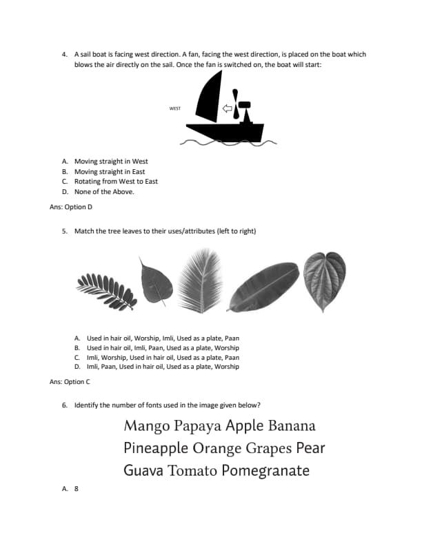 - subjective questions where the candidates will be evaluated on the basis of their creative abilities.