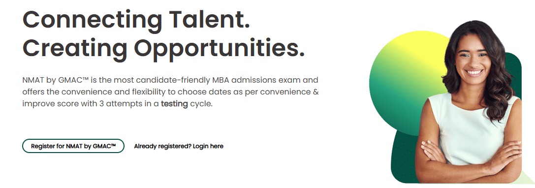The NMAT 2025 Registration has started on 1st August and will continue till 10th October 2025. You can register online on the NMAT by GMAC website, mba.com/exams/nmat and select your preferred date and time.