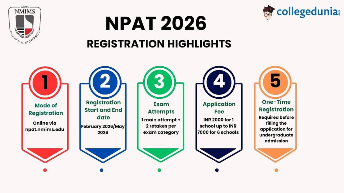 - The registration will start in February 2026 and close around May 2026, and you can check the official website, npat.nmims.edu, frequently to get exam updates.