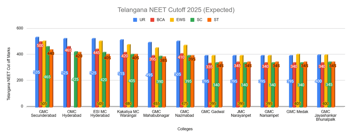 - Expected Telangana NEET Cutoff 2025- College-Wise