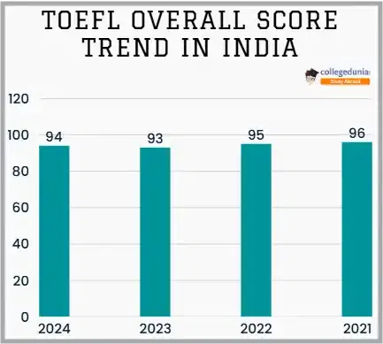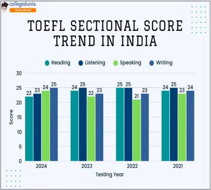The chart below shows the average scores by Indian TOEFL test takers in the past 4 testing years.