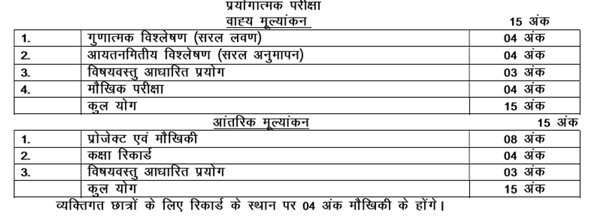 Ans. As per the UP Board class 12 Chemistry Syllabus PDF, 30 marks are allocated to practical component and internal assessment component. 15 marks are assigned for UP Board class 12 Chemistry with marks distribution as mentioned below.