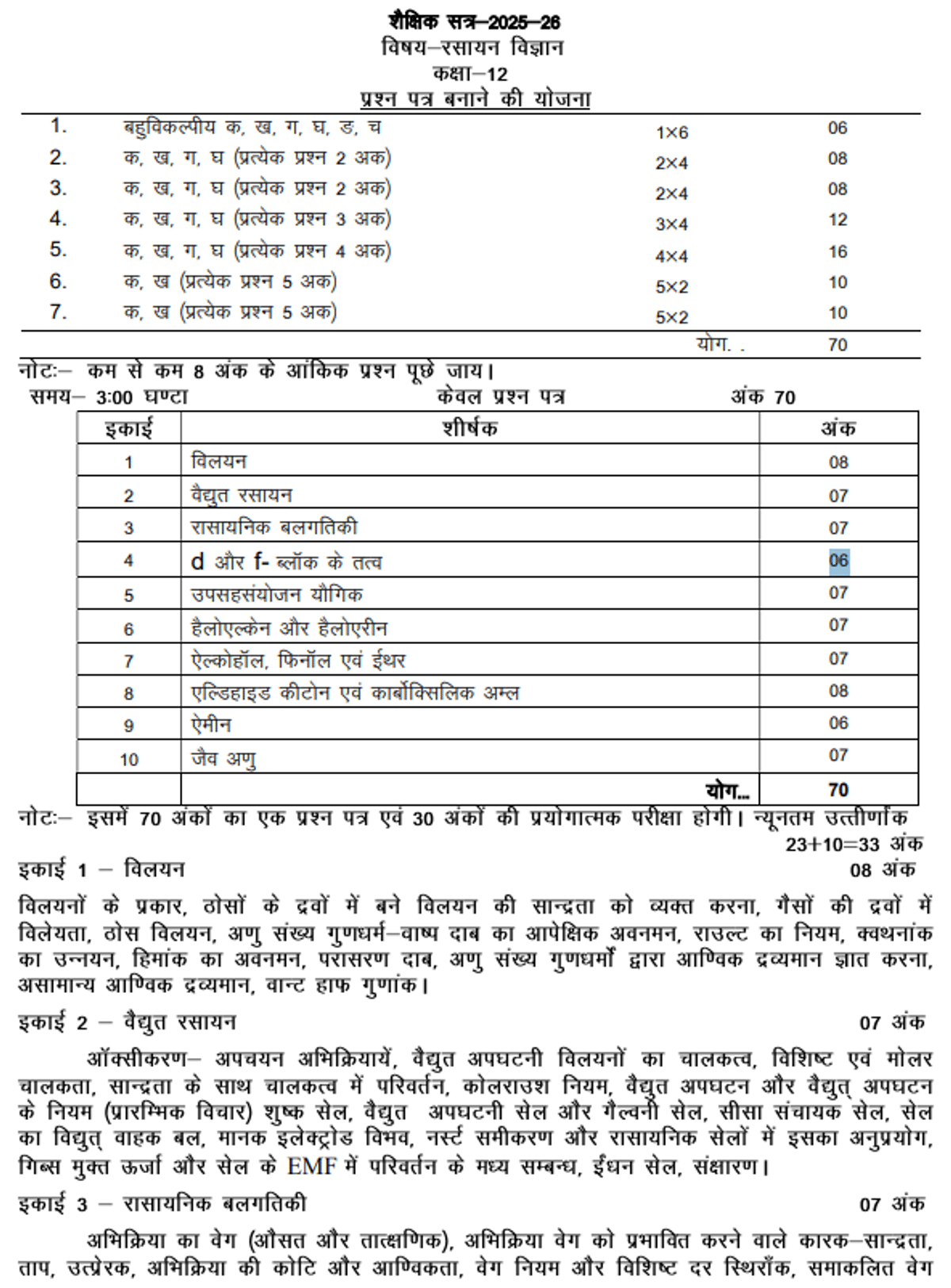 - UP Board Class 12 Chemistry Exam Pattern 2025-26