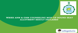 WBJEE ANM GNM 2025 Counselling Process