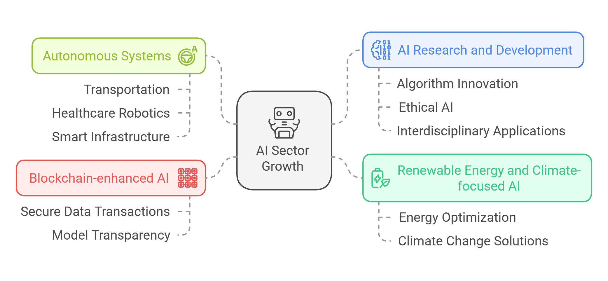 - Areas: AI in climate tech, renewable energy, and blockchain integration for secure and efficient data transactions.