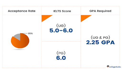 Those applying for BSBI admissions to bachelor’s programs, must have an International Baccalaureate or equivalent qualification. To get into MBA programs at Berlin School of Business and Innovation, one must have a minimum GPA of 2.25 (73-76%) to be considered for admissions. International students applying for BSBI admissions need to submit an IELTS score of 5.0 if applying for UG courses and PG programs have varied ELP requirements.