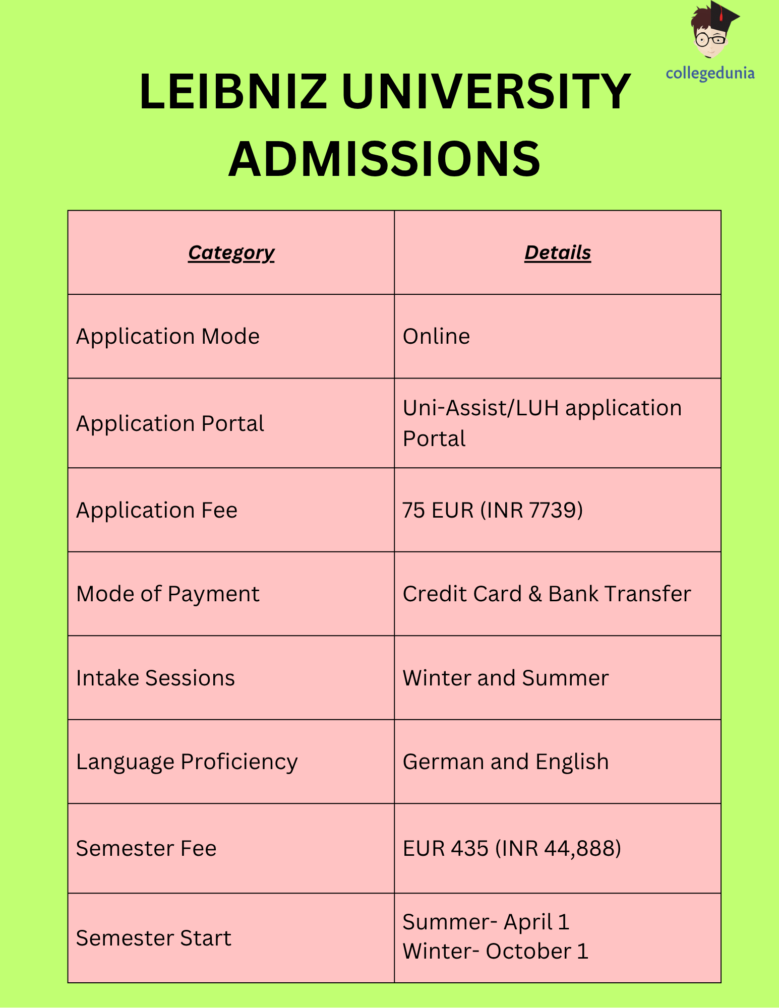 The deadlines for the 2 admission intakes at Leibniz University are given below: