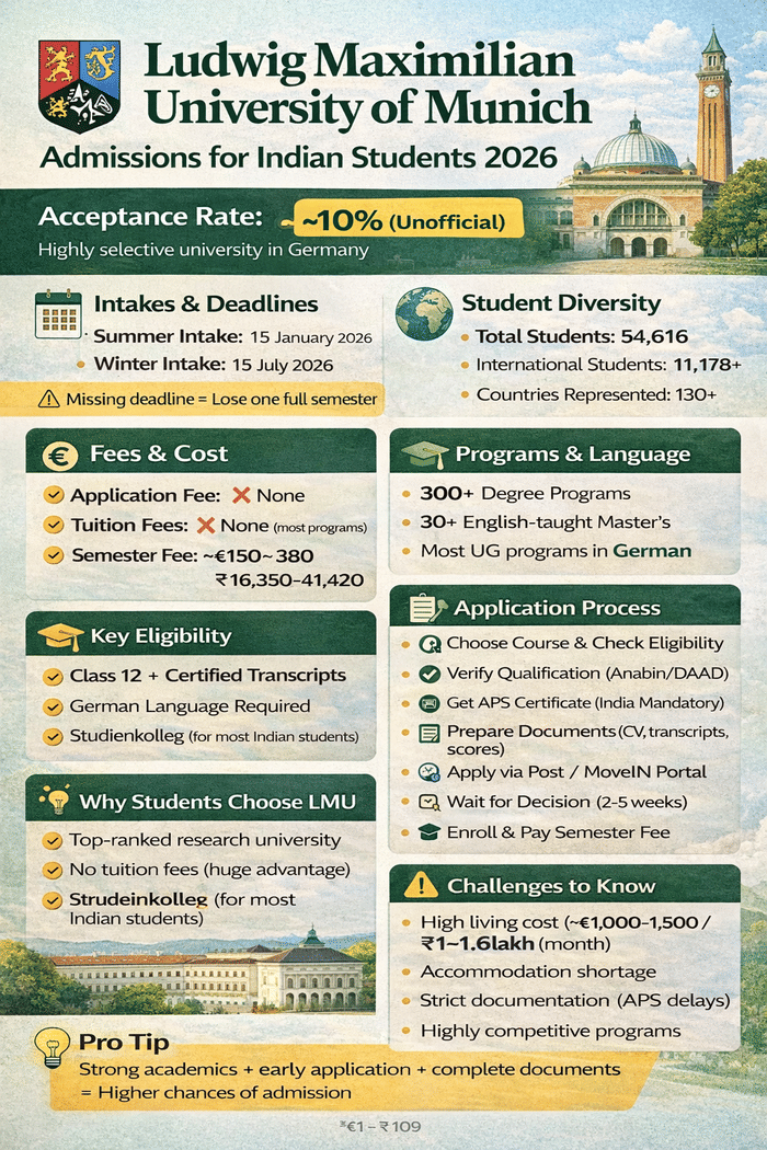 Ans. Yes, the APS certificate is mandatory for Indian applicants applying to Ludwig Maximilian University of Munich. You must obtain it from the German Embassy (APS India, New Delhi) before submitting your application, as applications without it are considered incomplete.
