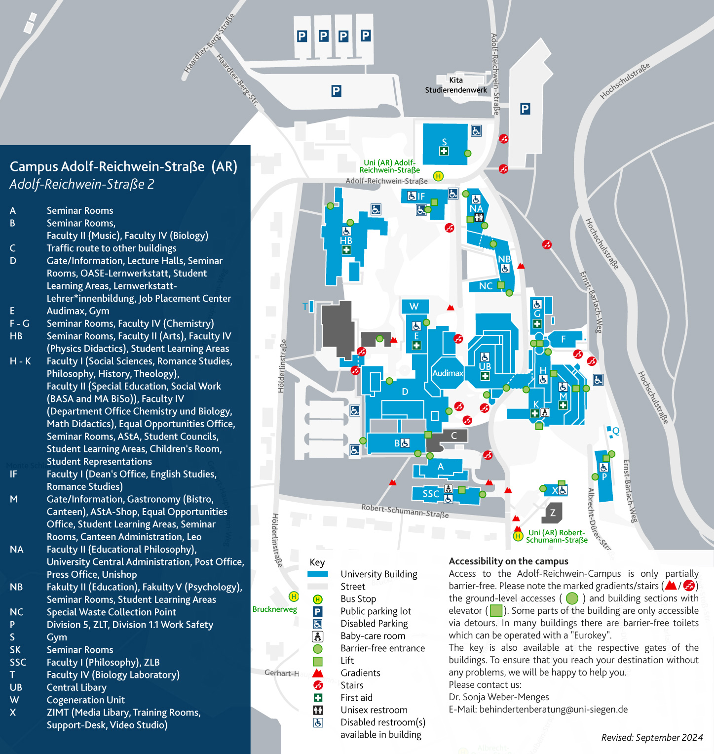 To know more about campus, refer: https://www.uni-siegen.de/start/kontakt/anfahrt_und_lageplaene/reichwein.html.en?lang=e