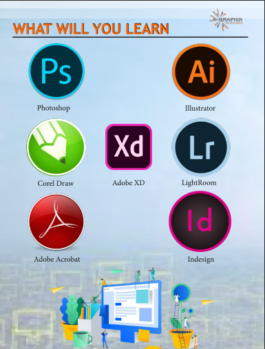 | Course Content | Adope Photoshop, Adobe Illustrator, Adobe Indesign, CoreDraw, Adobe Lightroom, Adobe Acrobat, UI/UX, Adobe Premier Pro, Filmora |