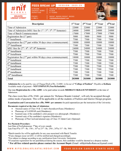 | Admission Fees | Rs. 22,000 (In favour of College of Fashion) | ||||||||||||||||||||||||||||||||||||