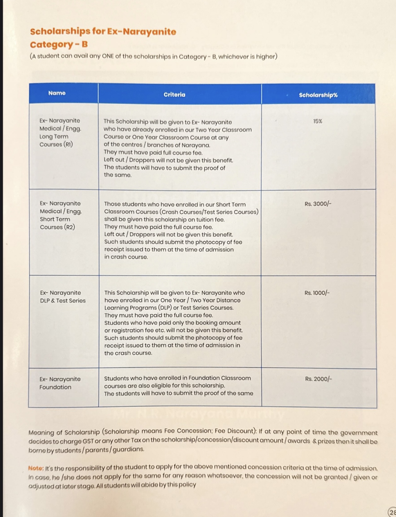 Ans. Yes Narayana Provide 3 Types of Scholarship