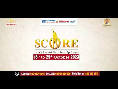 Sri Chaitanya Outstanding Achiever Reward Examination (SCORE) is a scholarship test conducted by Sri Chaitanya institute for students who seek admission and want to fulfil their dream of excelling in the competitive exams field. Students of class 5 to 10 can appear for the exams by registering for Rs.250. First 100 students are awarded with rewards and scholarships on tuition fees.