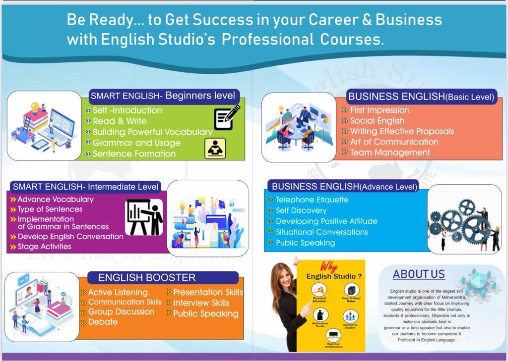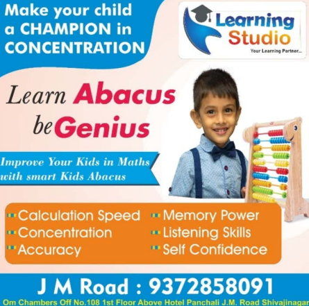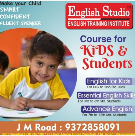 English Studio Spoken English Institute Pune, established in 2011 is one of the Training institutes in Pune that offers Training for English Language (Kids and Adults), and Abacus Training to the candidates who aspire for those courses. The institute has a total of 11 branches across the state. The class is mostly known for its high end infrastructure, and highly experienced teachers who offer personalized attention to every student. Free printed notes are also being provided to the student throughout the program