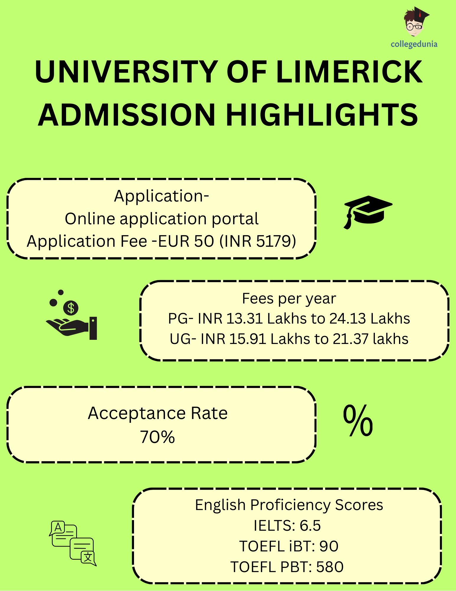 Admission to the University of Limerick for both UG and PG courses is done online via the application portal. Applicants have to pay an application fee of INR 5179. While applying to any courses, applicants must check the deadline and course-specific requirements to avoid any chaos while filling the application form. Not submitting the required documents and application on time can reduce the chances of selection at the University