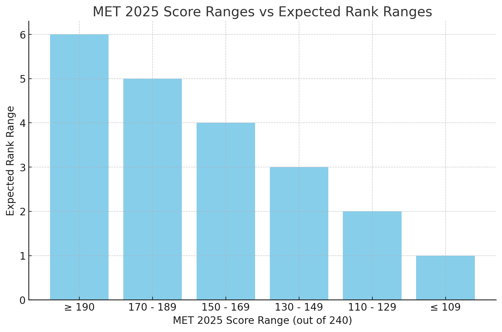| MET 2025 Score Range (out of 240) | Expected Rank Range |