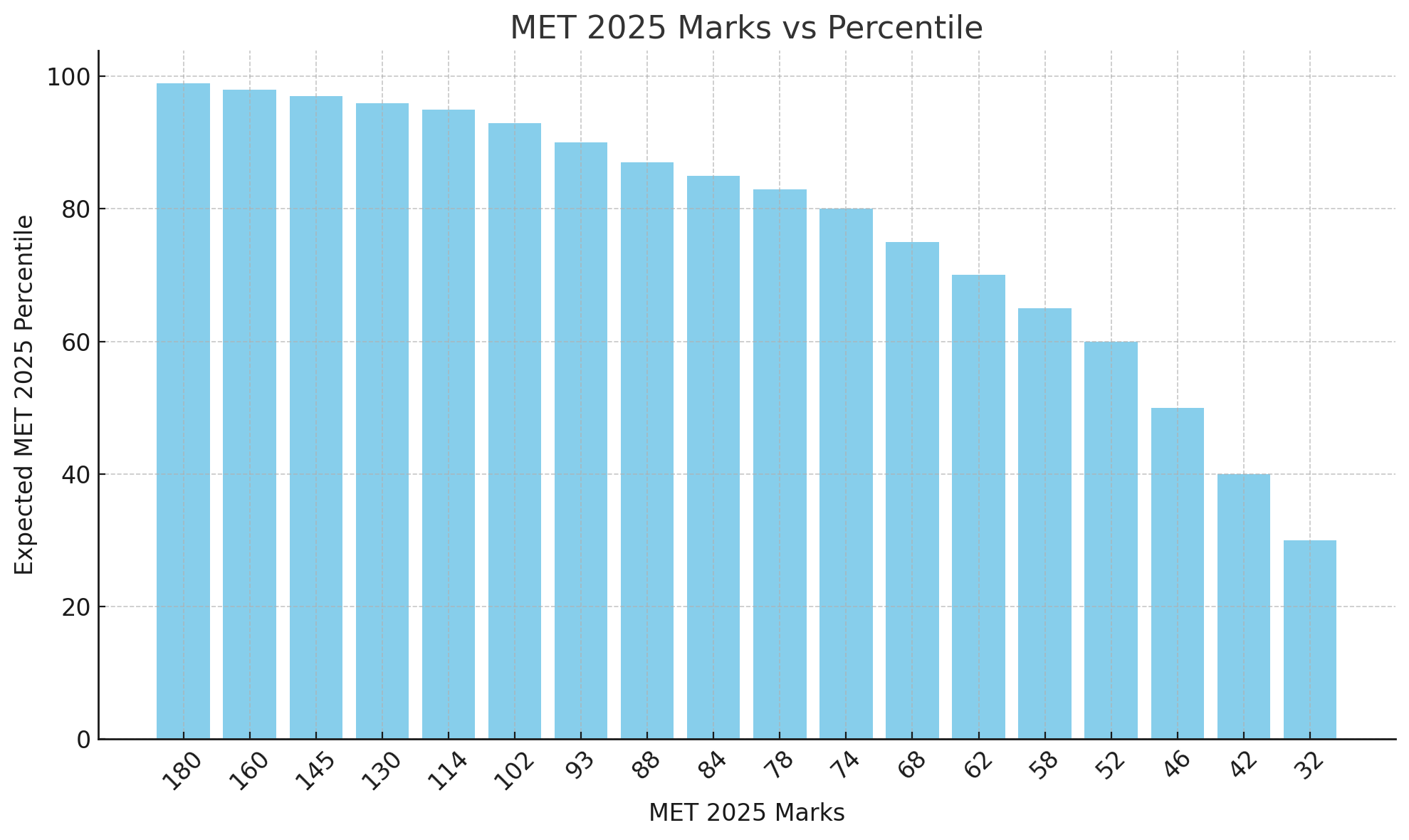 | MET 2025 Marks | Expected MET 2025 Percentile | Expected MET 2025 Rank Range |