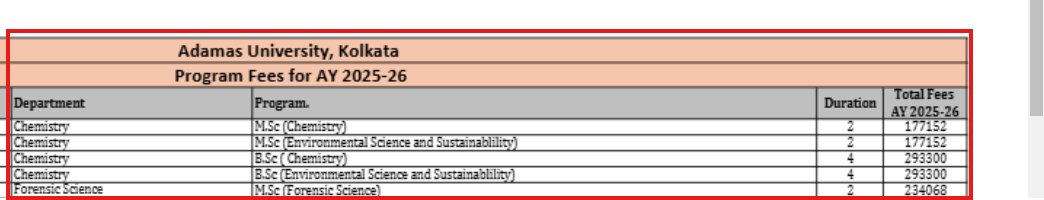 - Adamas University All Courses and Fee Details for AY 2025-26