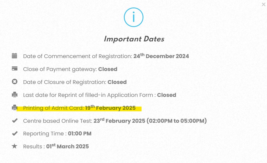 - Candidates must bring a printed copy of the admit card to the exam center.