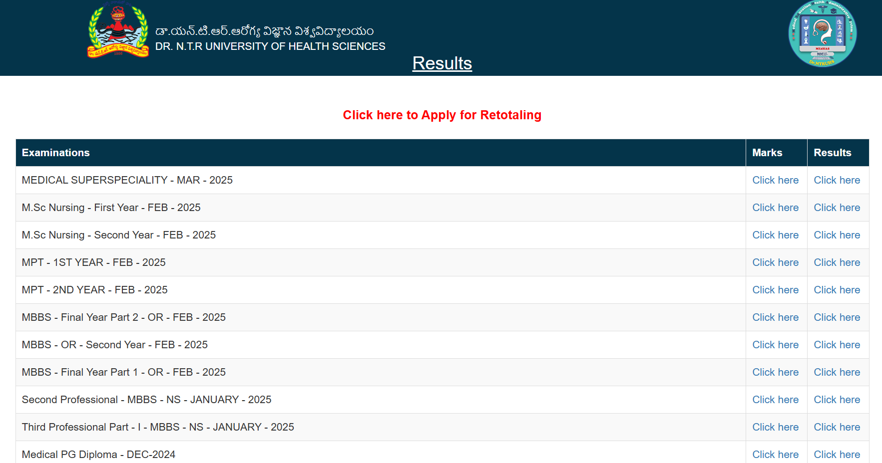 The table below consists of direct links to the results of the following semester examinations conducted by NTRUHS (YSRUHS):