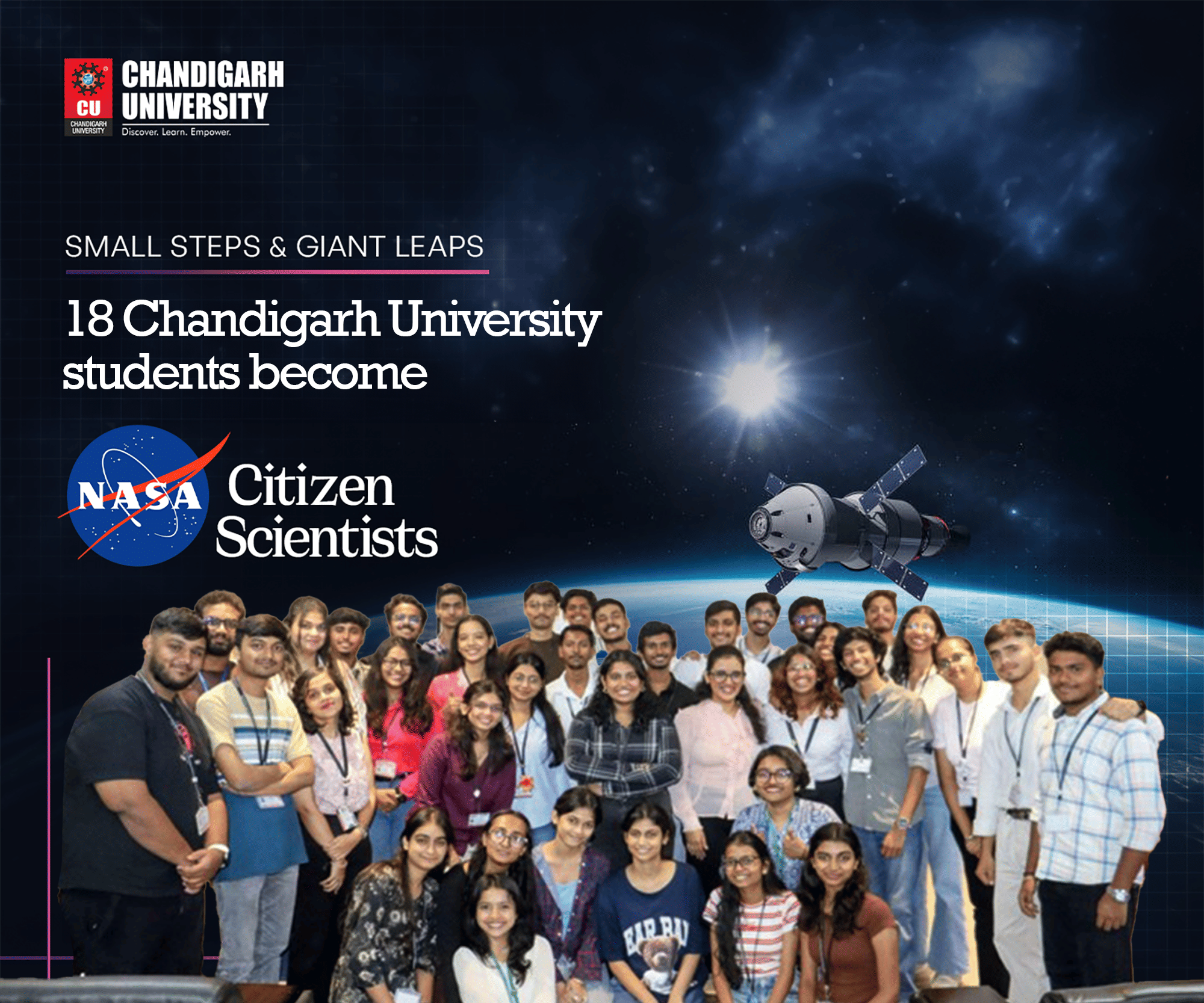 Chandigarh, India: Chandigarh University continues to scale new heights in global research engagement as 18 students from the University’s Astronomy Club have been officially recognised as NASA Citizen Scientists after successfully participating in the International Asteroid Search Campaign (IASC) — a global citizen-science initiative partnered with NASA.