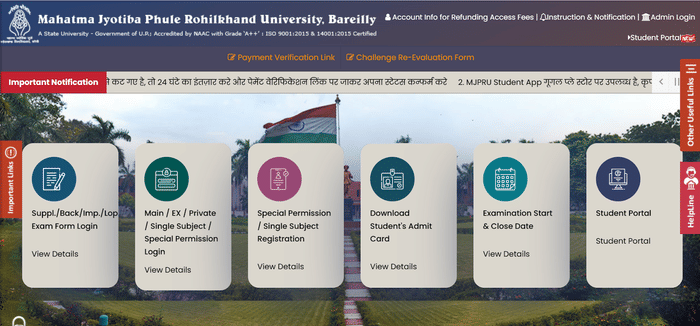 In case any information is misprinted on the admit card of MJPRU University, the student should contact the authorities via the helpline number available on the official exam portal.