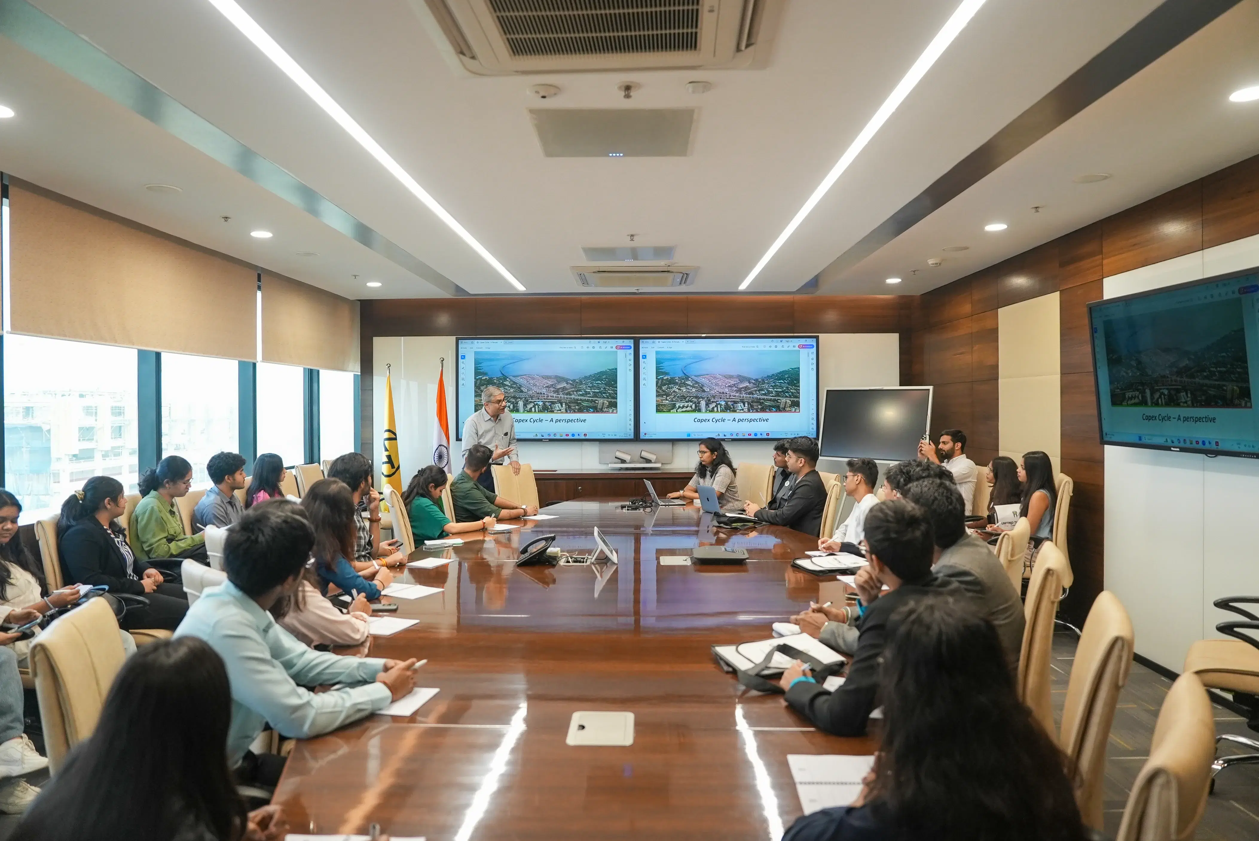 From regulatory insight, the tour moved to corporate vision with P. Ramakrishnan, EVP of Larsen & Toubro. His advice was sharp: “Don’t make your seat warm; it makes you cozy.” The students saw risk and reward as more than abstract concepts , they were tools to drive growth.Lessons about L&T's history and its commitment to green energy emphasized that progress in development is driven by a restless effort, not complacency. The idea of leaving comfort zones began to fit into the tour's wider story: real progress falls to those who push their limits.