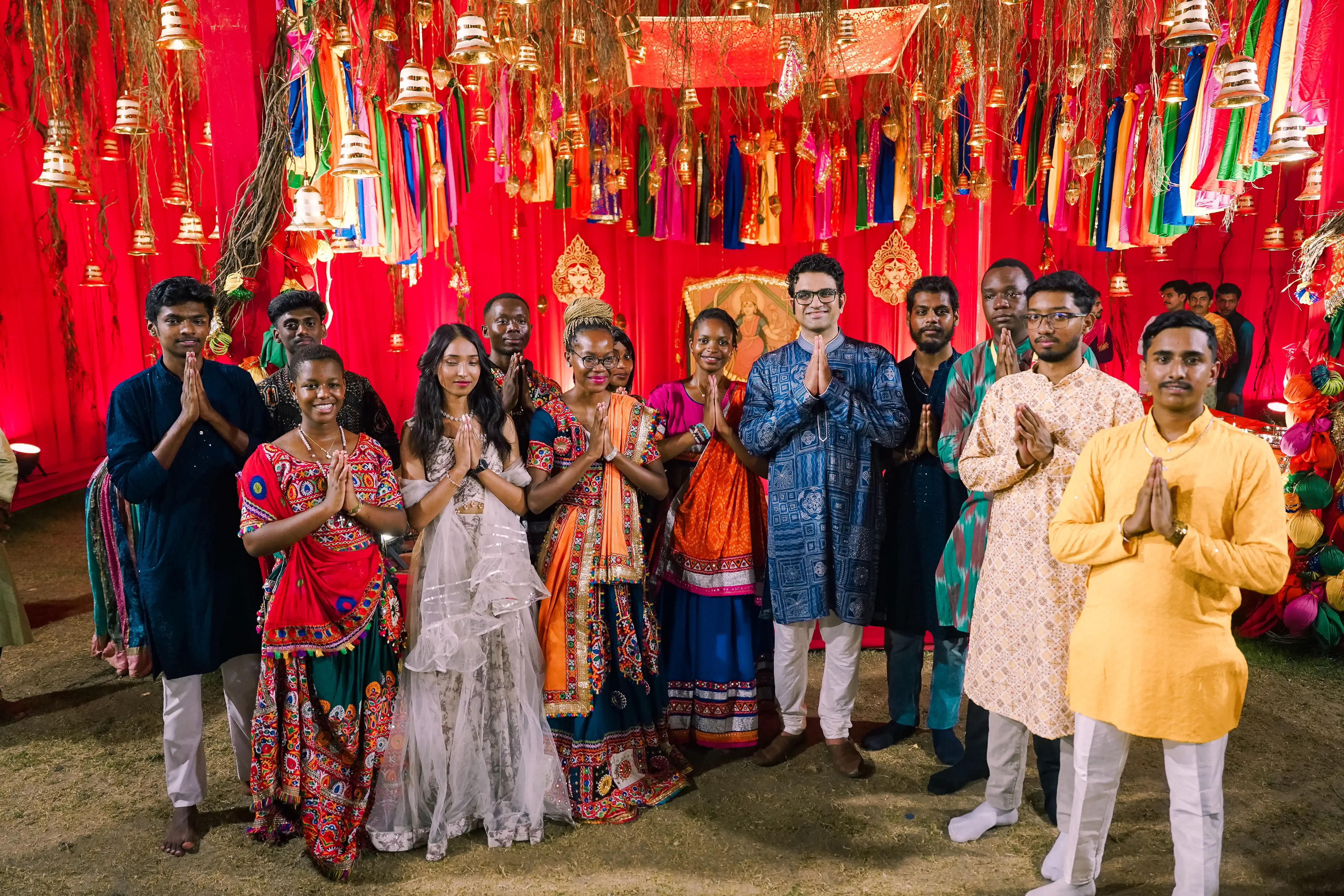 Music filled the air, and the international students from across the globe danced to the music and owned the stage.“I never thought I’d find myself dancing Garba in Gujarat,” said a student from Mozambique, grinning between spins. “But the joy is contagious, once the music starts, you can’t help but join in.” Another student from Bhutan called the experience “a blend of fun, friendship, and culture that makes you forget where you’re from, because in that moment, everyone belongs to the same rhythm.”