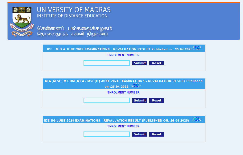 University of Madras Institute of Distance Education Revaluation and Re-examination Result 2025