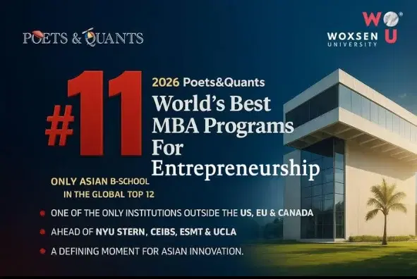 Woxsen University, located in Hyderabad is once again on the global stage! In a landmark achievement, Woxsen University is now ranked #11 on the 2026 "Poets&Quants World's Best MBA Programs for Entrepreneurship". The ranking showcases Woxsen University as the only Asian B-School to feature in the Global Top 12 and was published on November 17th.